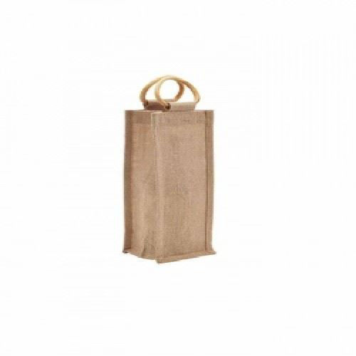 Classic 1 bottle Natural colour eco friendly jute bag with cane handle. Long lasting and a great alternative to non woven PP bags.