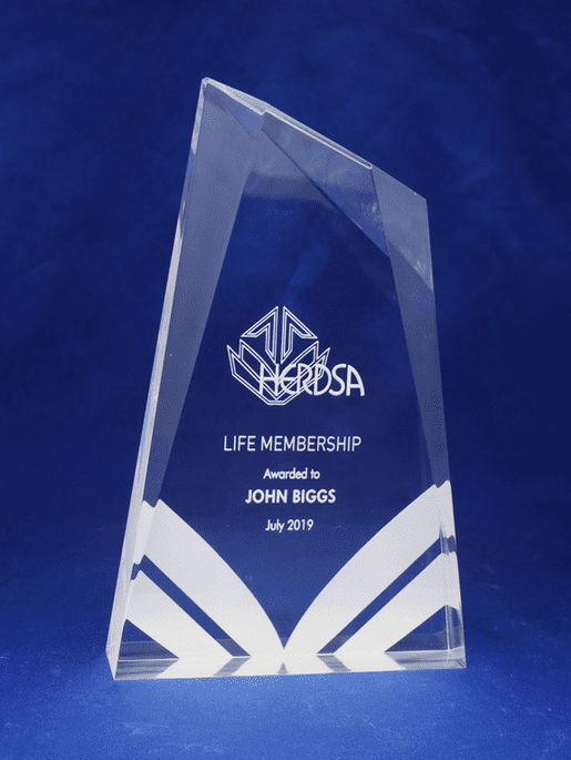 This nice contemporary design has polished angled edges and summit top. Looks great Laser Engraved or vivid full colour print. This Acrylic Trophy is Supplied in quality presentation box.