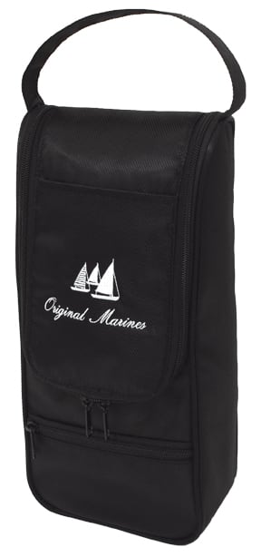 Zipper closure with inside separator, Silver lining, One front open and one zippered pocket, Hand carry handle and Holds 2 Dark Greens