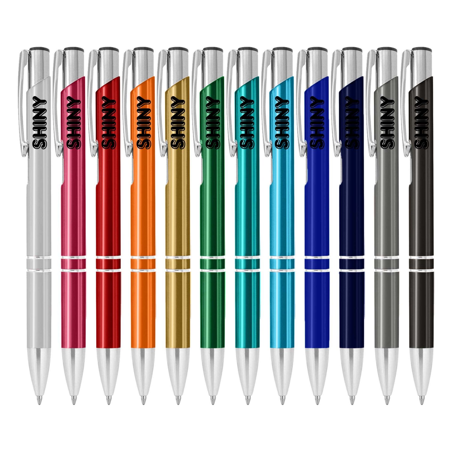Popular aluminium stylish design pen with shiny silver fittings and metallic finishing barrel click action with plastic Parker-Type German manufactured black ink refill 1200 meters writing distance tungsten carbide ball provides you with quality writing.