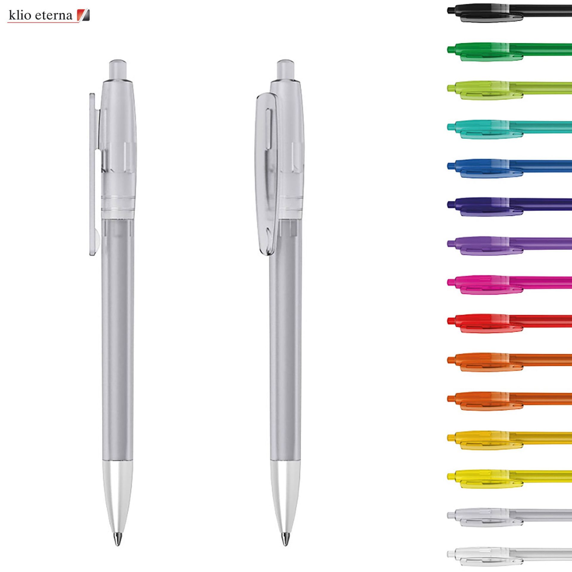 Klio - A Top European Brand, Est. 1900, sold world wide.Simple classic design, click action, frosted translucent plastic pen with satin nickel plated brass metal tip, high quality silktech German manufactured black ink refill(Quality acc. to ISO 12757-2/Shelf life 3 years), 2000 meters writing distance(twice longer than China made pens), tungsten carbide ball provides you with quality writing. Germany Design and Make. Exclusive to Dex Collection in Australia and New Zealand. 500 units minimum per colour. Customised colours are available from 5,000+