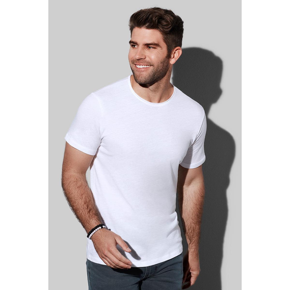 Soft combed cotton T-shirt for men with a very light feel and a fashionable rolled collar. The fine structure gives these T-shirts a premium look and high elasticity. Specifications * Fabric: 100% ring-spun combed cotton; single jersey * Weight: 105 g/m² * Fit: Normal Fit * Sizes: S-XL * Care Instructions: washable at 40°C * Other Features: rolled self-fabric collar, neck tape, side seams, small size label in the collar, care label in the side seam