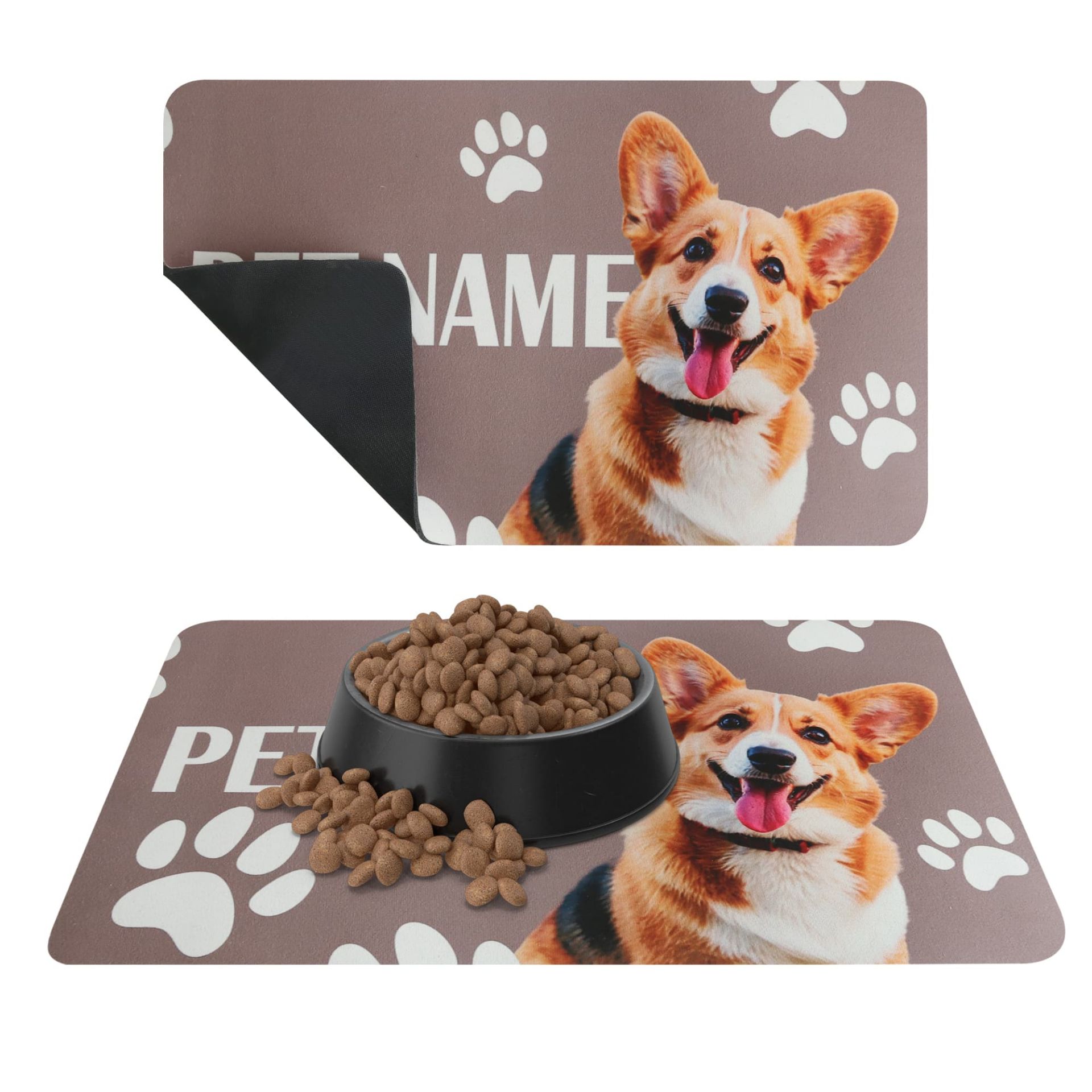 Keep mealtime fun and tidy with our New Pet Feeding Mat, with customisable designs and your pet’s name. Made with a rubber bottom and diatomaceous earth, it quickly absorbs spills to keep floors dry. The non-slip rubber backing ensures the mat stays in place, even during active feedings. A practical and playful addition for any pet owner. Add a unique touch to your pet’s feeding area with custom designs.