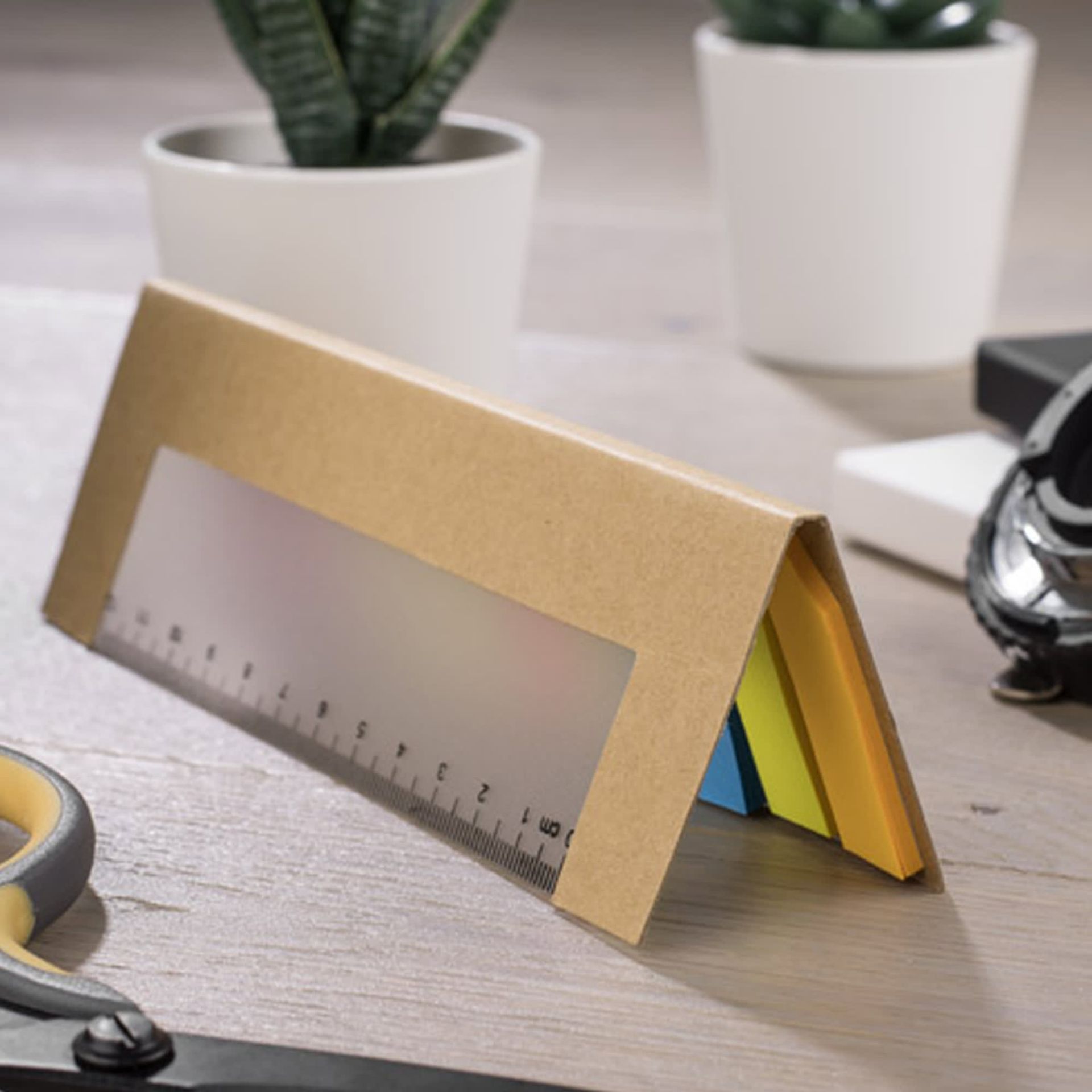 Cardboard ruler notepad which contains self-adhesive note pad and 5 coloured sticky flags. Perfect tool for every desk.
