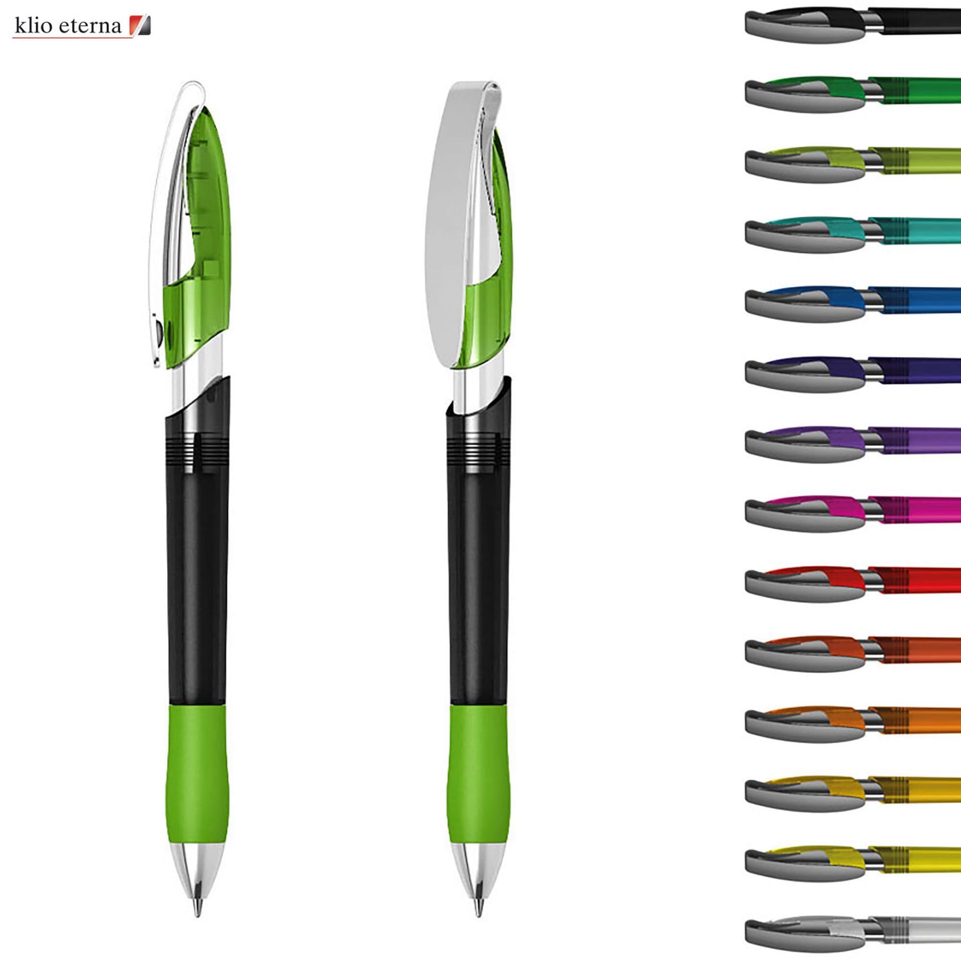Klio - A Top European Brand, Est. 1900, sold world wide.Click action, transparent high gloss plastic barrel with a thermoplastic grip which provides you with a comfortable writing experience, broad printing area clip, shiny brass nickel plated tip, clip and metalized shiny silver sleeve, high quality silktech Parker-Type German manufactured black ink refill(Quality acc. to ISO 12757-2/Shelf life 3 years), 5000 meters writing distance(5 times longer than China made pens), tungsten carbide ball provides you with quality writing. Germany Design and Make. Exclusive to Dex Collection in Australia and New Zealand. 500 units minimum per colour. Customised colours are available from 5,000+
