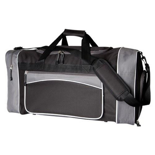 600D Polyester.Large main zippered compartment.Large shoe tunnel with air vents.Side and front zippered pocket.Top carry handles.Adjustable and removable shoulder strap.Boarded base.Mesh business card holder.
