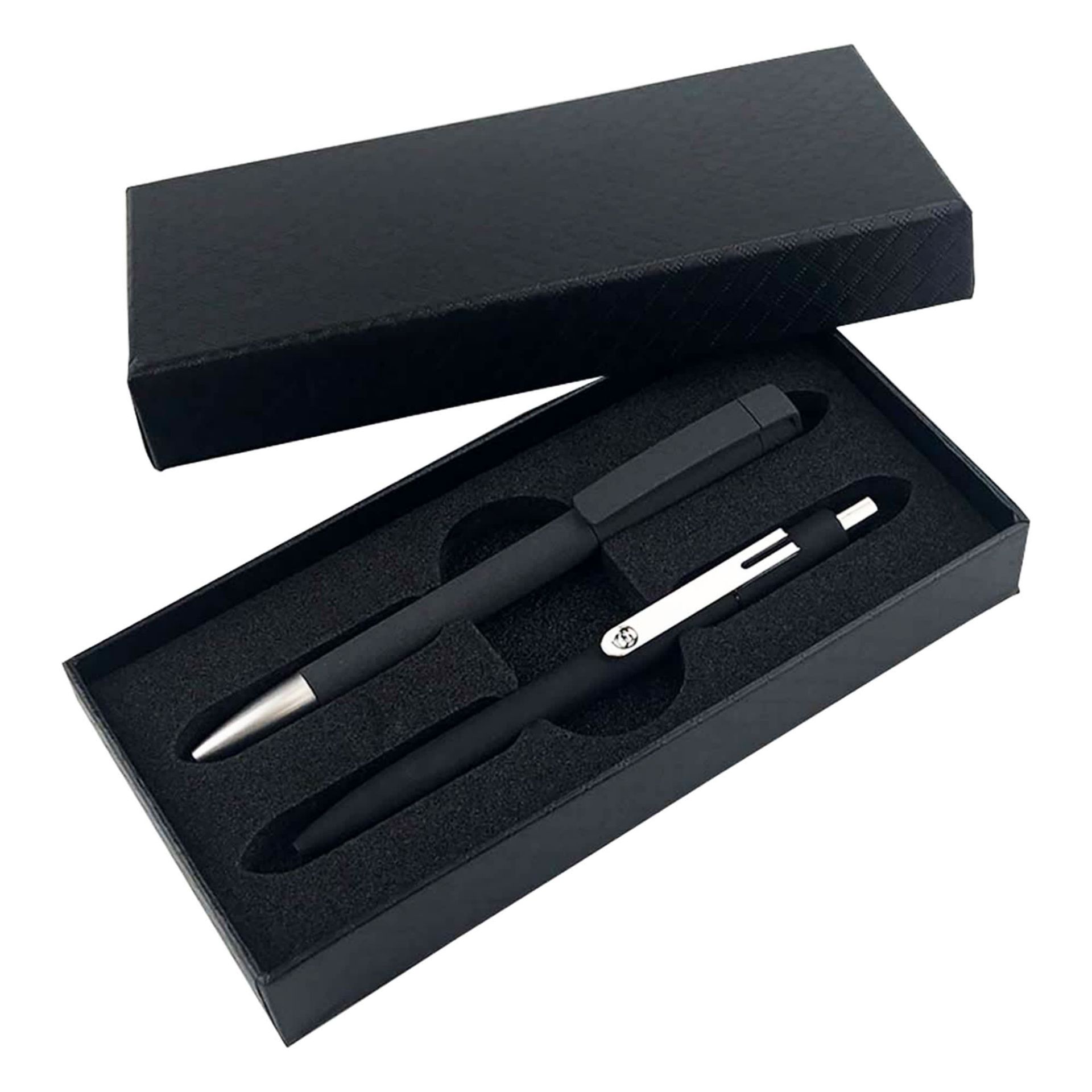 Pair our quality soft touch German Klio Turnus 16GB USB Pen with the sleek NFC Touchview Metal Pen for the ultimate corporate gift. Presented in our elegant black pen gift box, this stylish and functional duo offers both tech and sophistication, perfect for impressing clients, partners or staff with a practical and premium gift solution.