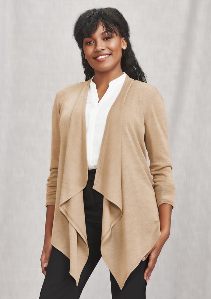Features: Waterfall drapes are centered through the front allowing for the visibility of branding. Wear with chinos or jeans for a smart casual look, or with suiting lowers for a more corporate look. Coordinate Camel with navy or black lowers. Centre back length has been graded according to size. Sizes L to 4XL have a longer back hem to provide extra coverage over hips. Refer to style sheet for further details Fabric: 50% Merino Wool 50% Acrylic 200gsm. Wool blend knit provides the perfect blend of warmth, softness and hard-wearing properties. Sizes: XXS-4XL. (AUS/NZ)